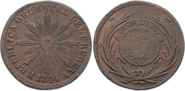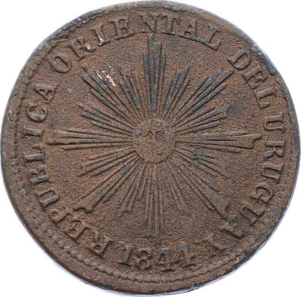 O2146 Very Scarce Old Fake Uruguay 5 Centesimos 1844 VF