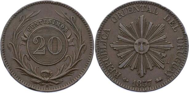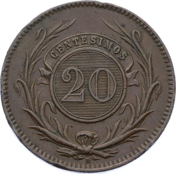 O2148 Uruguay 20 Centesimos 1857 D Lyon Minted in France ->Make offer
