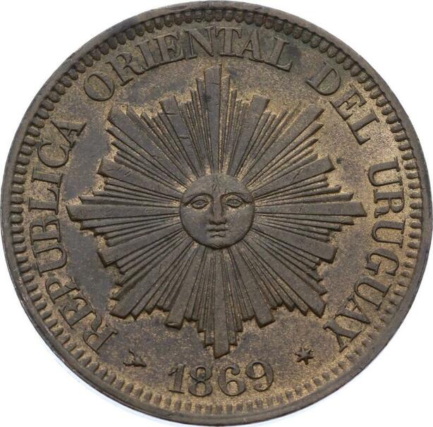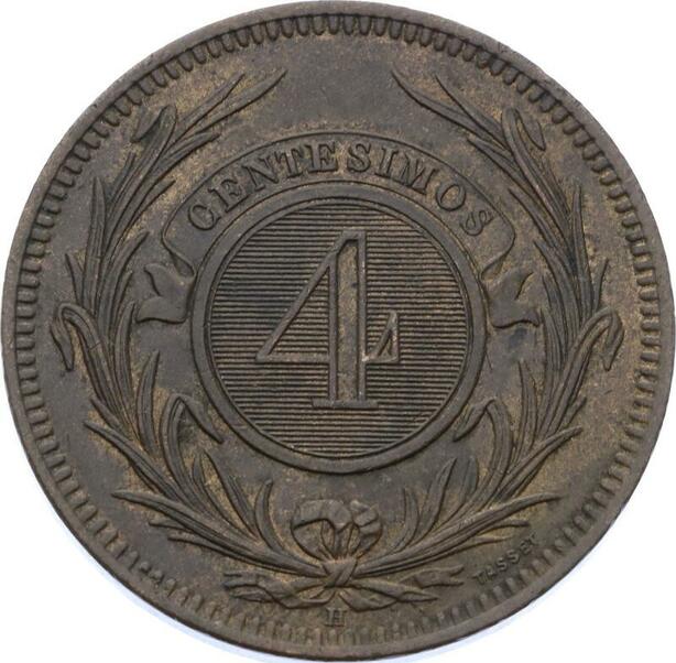 O2149 Uruguay 4 Centesimos 1869 H Heaton UNC ->Make offer
