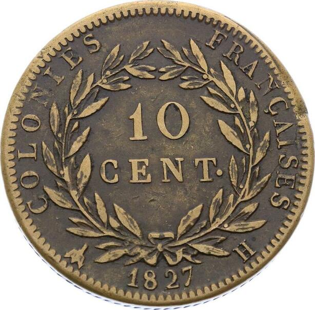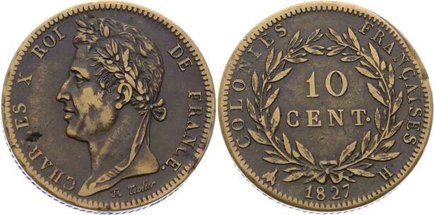 O2158 French Colonies Guadeloupe 10 Centimes Charles X 1827 H La Rochelle Sup
