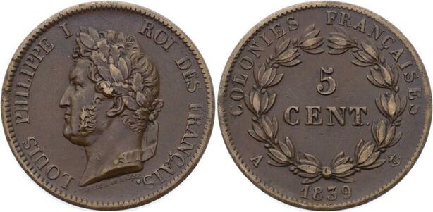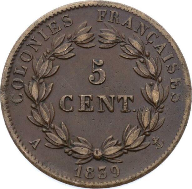 O2162 Louis-Philippe 5 Centimes des Colonies Francaises Guadeloupe 1839 Paris