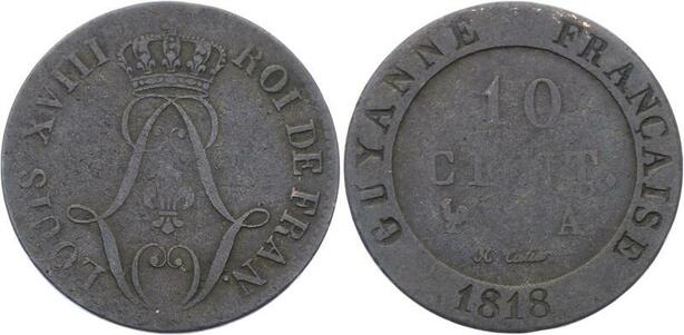 O2164 Guyane Louis XVIII 10 Centimes 1818 Paris ->Make offer