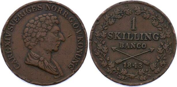 O2206 Sweden 1 Skilling Banco 1843 Carl XIV 1835 1843 ->Make offer