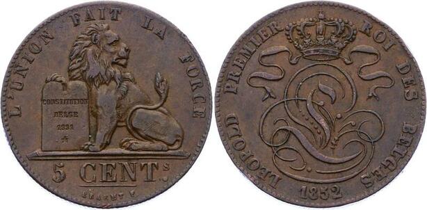 O2235 Belgique Belgium 5 Centimes Léopold I 1852 XF ++ ->Make offer