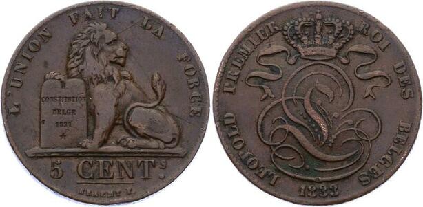 O2270 Belgium 5 Centimes Léopold I 1833 VF ++ ->Make offer