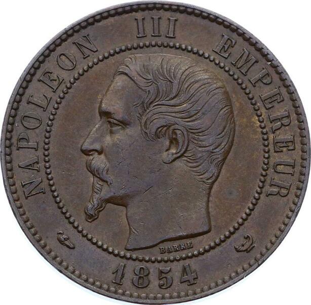 O2295 France Rare 10 Centimes Essai Napoléon III Visite Bourse 1854 Superbe