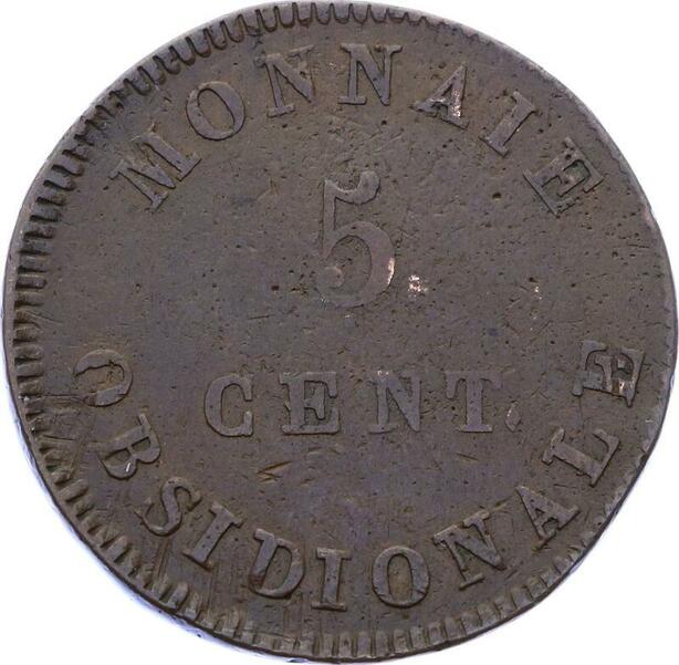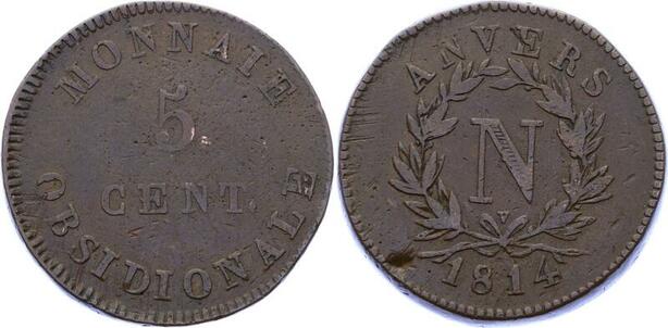 O2298 Siège Anvers 5 Centimes Napoleon 3ème type V 1814 Atelier Wolschot