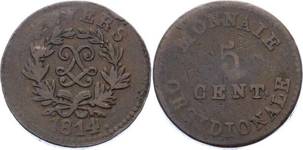 O2299 Belgique 5 Cents Napoléon Anvers Double L Frappe Arsenal Marine 1814 ->Make offer