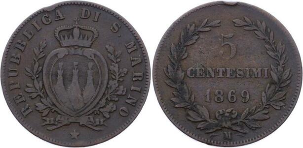 O2311 San Marino 5 Centesimi 1869 M ->Make offer
