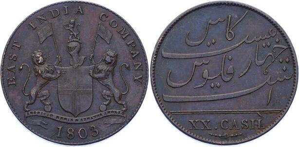O2461 Scarce British India Bengal Presidency 20 Cash 1803 AU !! ->Make offer