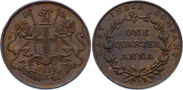 O2465 British India Scarce 1/4 Quarter Anna Victoria 1835 UNC !!! ->Make offer