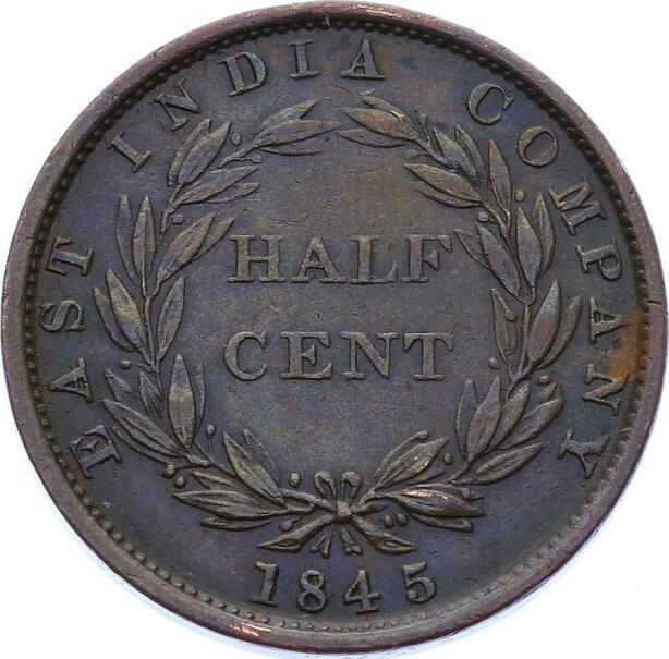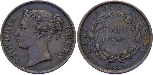 O2466 Straits Settlements Singapore Scarce 1/2 Cent Victoria 1845 AU !!!