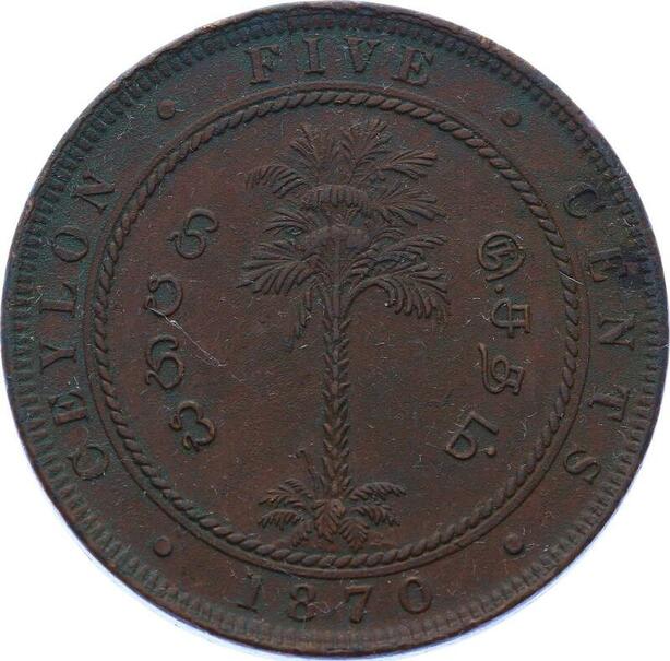 O2469 British Ceylon 5 Cents Victoria 1870 Quality !!! ->Make offer