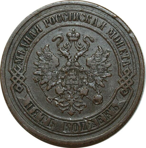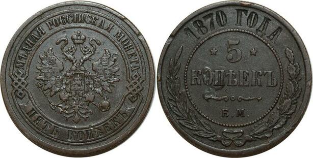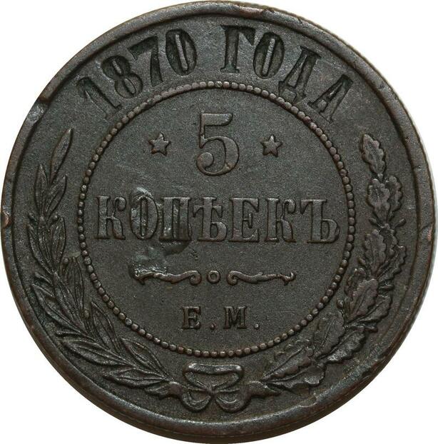 O2515 Russia 5 Kopecks Alexandre II 1870 ЕМ Ekaterinburg Y# 12.1 ->Make offer