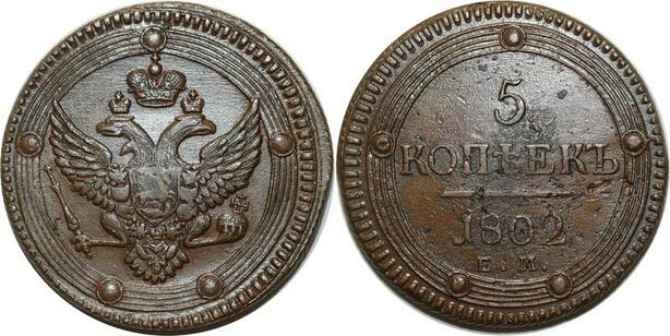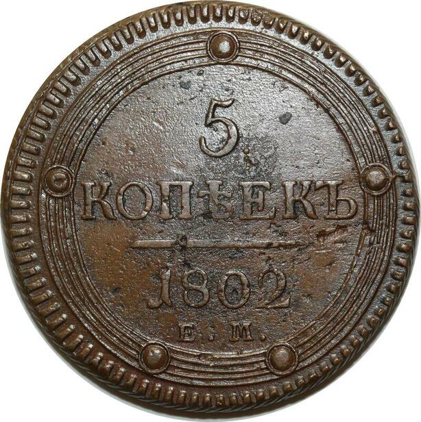 O2519 Russia 5 Kopecks Alexander I 1802 ЕМ Ekaterinburg C# 115.1 AU !!