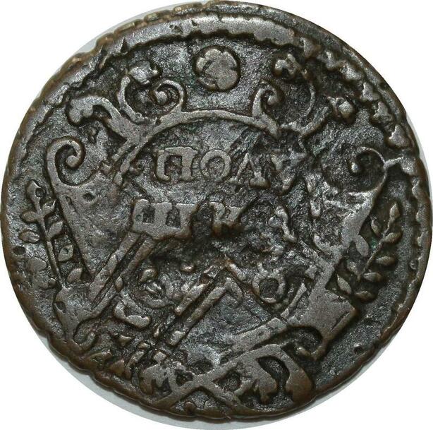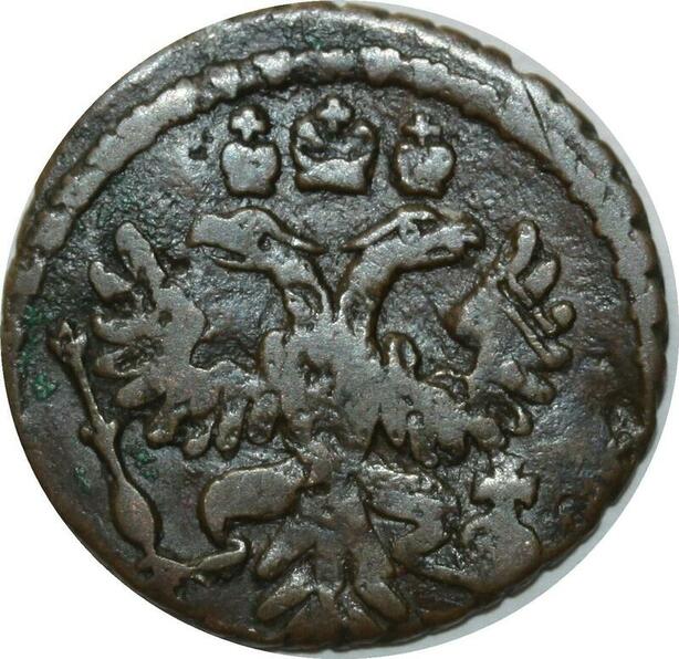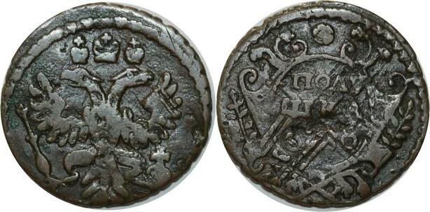 O2547 Scarce Russia Polushka 1/4 Kopek Countermarked Peter II 1738