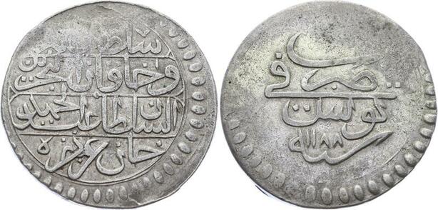 O2582 Rare Tunisie Rial Piastre Sultan Abdul Hamīd II 1188 1774 Silver ->Make offer