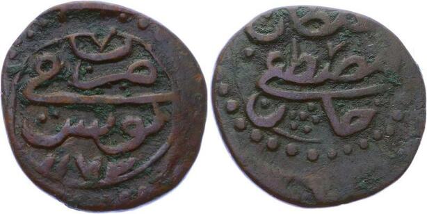 O2589 Tunisie Burbe Sultan Mustafa III 1173 1760 Error decentrée KM# 52.2