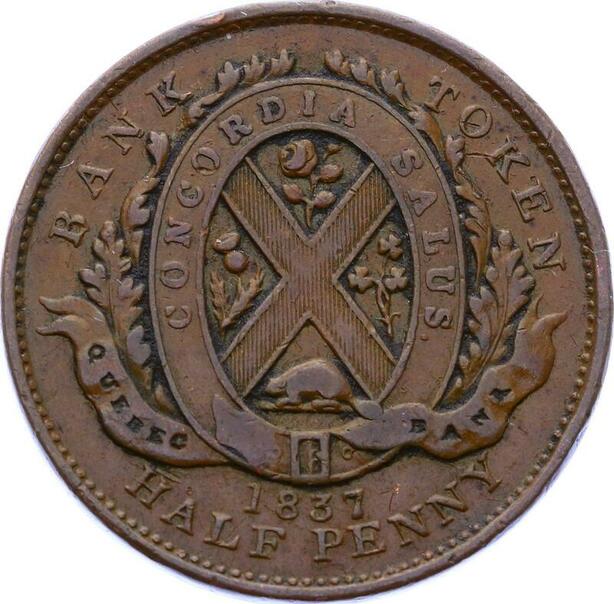 O2611 Canada Bas Canada 1/2 Penny 1 Sou Quebec Bank 1837 ->Make offer