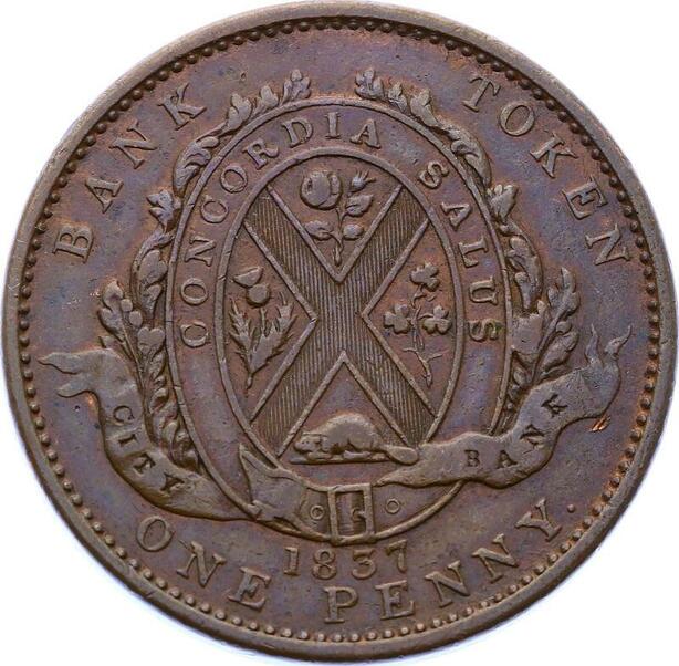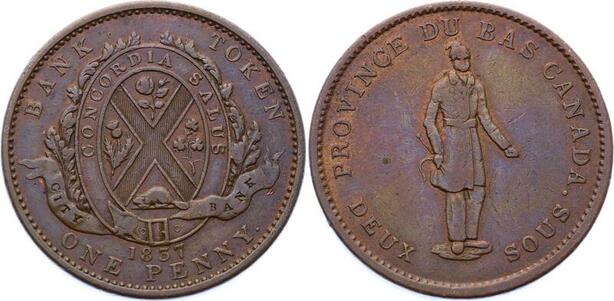 O2612 Canada Bas Canada 1 Penny 2 Sous City Bank 1837 ->Make offer