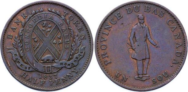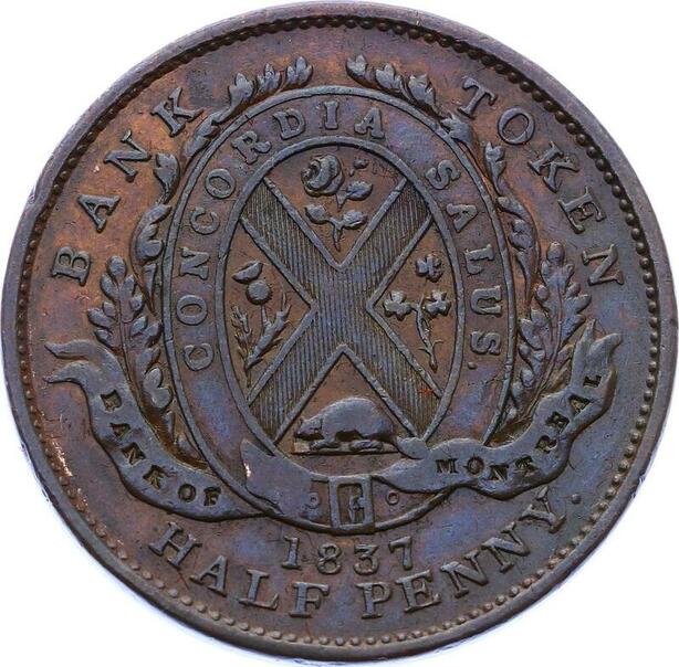 O2615 Bas Canada 1/2 Penny 1 Sou Bank of Montreal 1837 ->Make offer