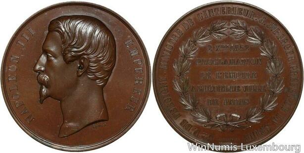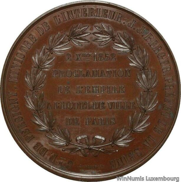 O4597 Rare Médaille Napoléon III Proclamation Empire Hôtel Ville Paris 1852 SPL