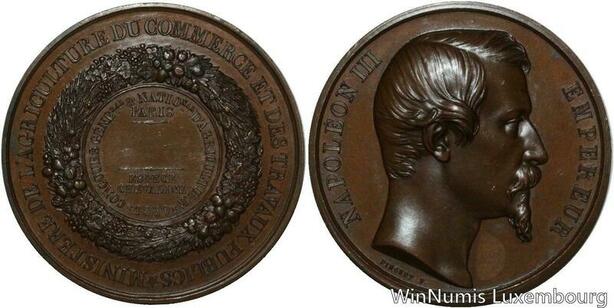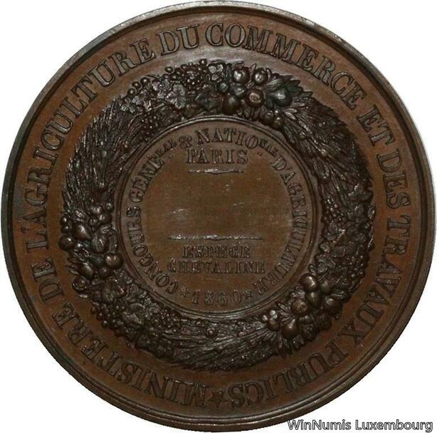 O4606 Rare Médaille Napoléon III Agriculture Commerce 1860 Pingret SPL