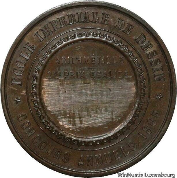 O4618 Rare Médaille Napoléon III Ecole Impériale Dessin 1865 SUP