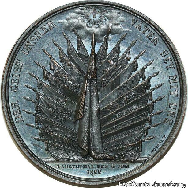 O5481 Scarce Switzerland Medal Langenthal Bern Officiers 1822 Bovy Desnoyers UNC!!