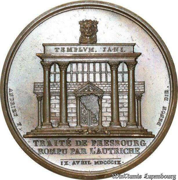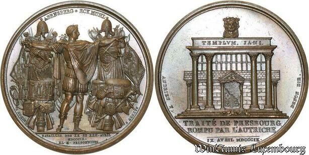 O5615 Rare Medaille Napoléon I Traité Presbourg 1809 Baron Desnoyers SPL