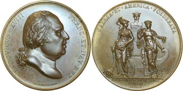 O6008 Scarce Medal Louis XVIII Andrieu France USA America 1822 Desnoyers SPL