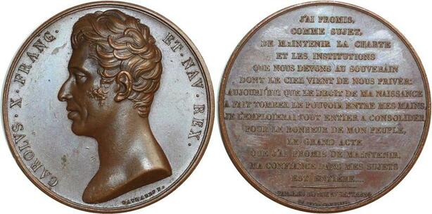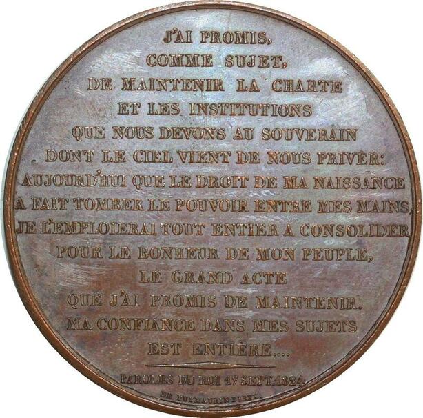 O6028 Médaille Charles X Paroles du Roi Gayrard 1824 Baron Desnoyers SUP