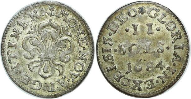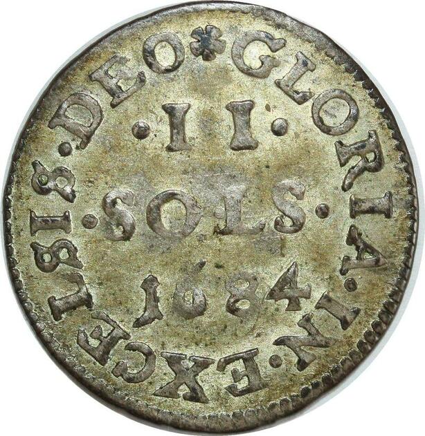O6145 Rare France 2 Sols Louis XIV 1684 Strasbourg Argent Silver SUP ->Make offer