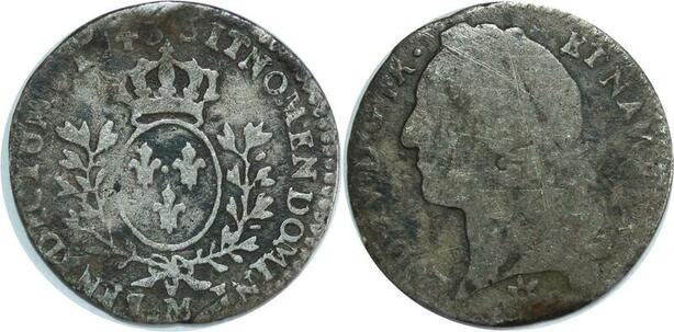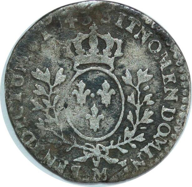 O6154 Rare R2 France 1/20 Ecu Louis XIV Bandeau 6 sols 1743 M Toulouse Argent