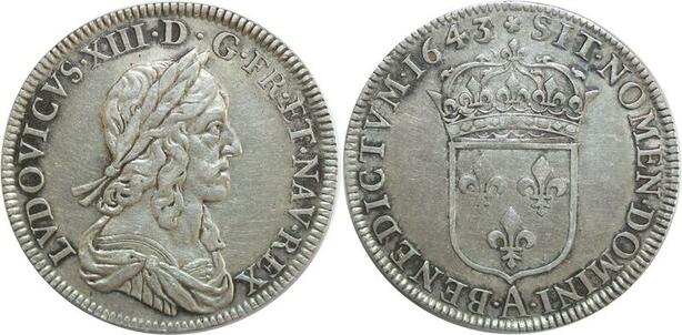 O6158 Rare France 1/2 Ecu Louis XIII 2nd p. Warin 1643 Rose Argent ->M offre