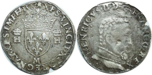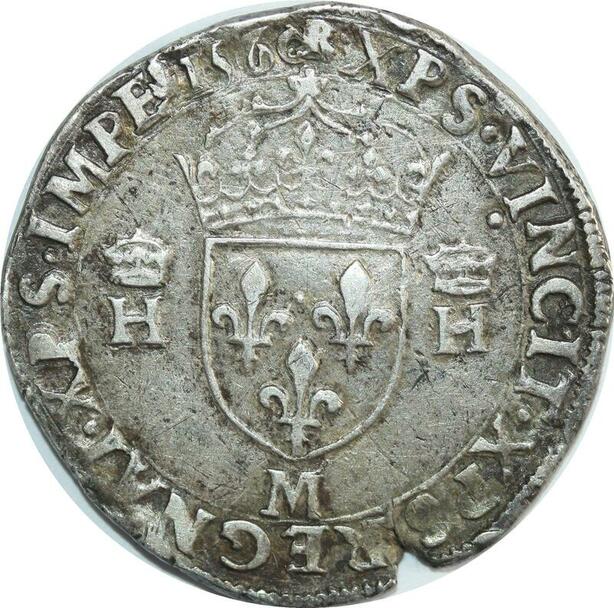 O6195 Rare Teston France François II nom d'Henri II 5eme typ 1560 M Toulouse Argent
