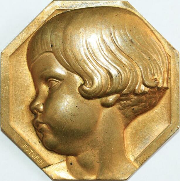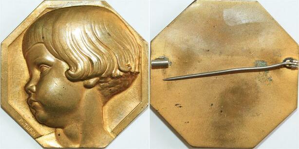 O6252 France Rare Médaille Art Déco Octogonale Jeune enfant Turin SUP