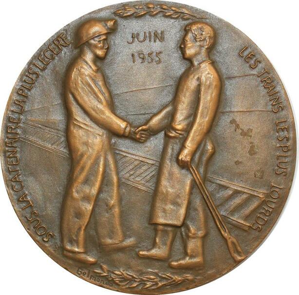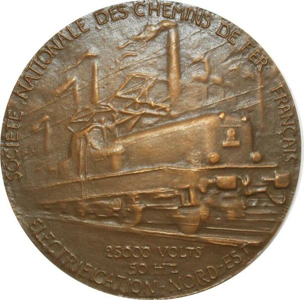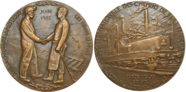 O6347 France Médaille SNCF Electrification Nord Est Belmondo 1955 25000 Volts SUP