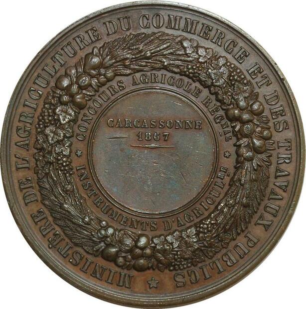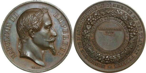 O6396 Médaille Napoléon III Barre Carcassonne 1867 SUP