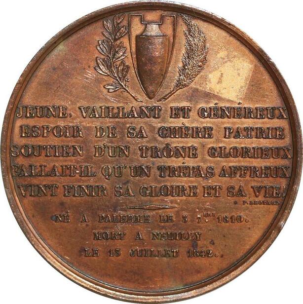 O6425 Médaille Ferdinand Philippe duc Orléans Palerme Neuilly 1842 SUP
