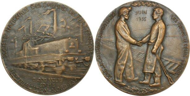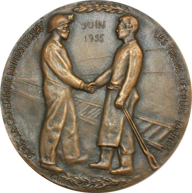 O6456 France Coffret Médaille SNCF Electrification 25000 Volts Mans Rennes 1955 FDC