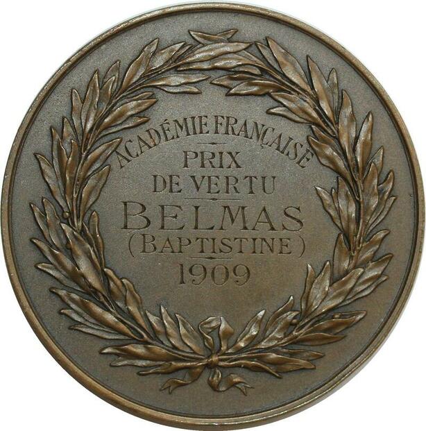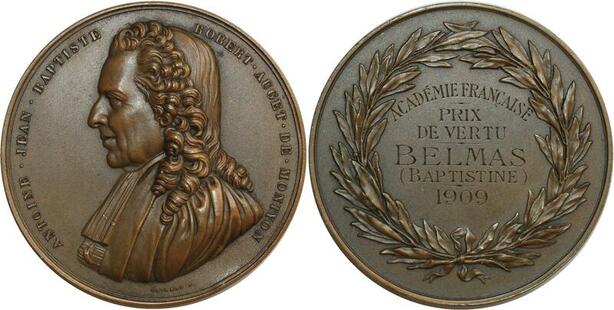O6464 France Médaille Prix Vertu Belmas Jean Baptistine Robert Auger de Montyon SUP