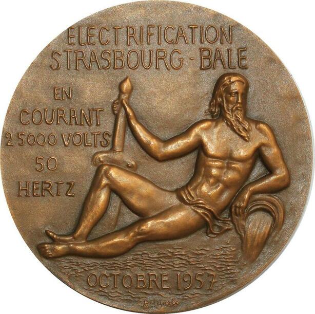 O6471 France Coffret Médaille SNCF Electrification Strasbourg Bale 1957 Belmondo FDC