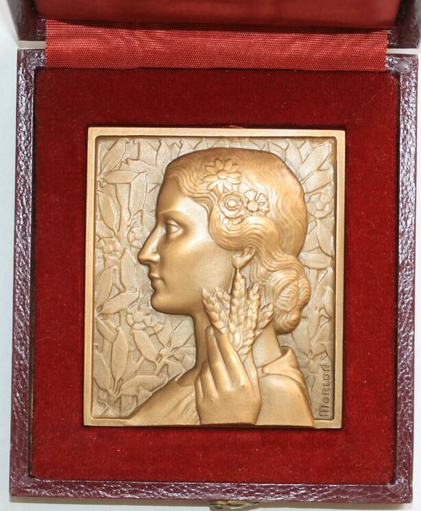 O6472 France Coffret Plaque Art Déco Morlon Femme Epi de Blé 1969 Mayenne SPL