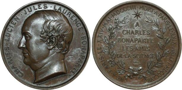O6488 Rare Médaille Charles Bonaparte Amis Science dumont Ponscarme 1857
