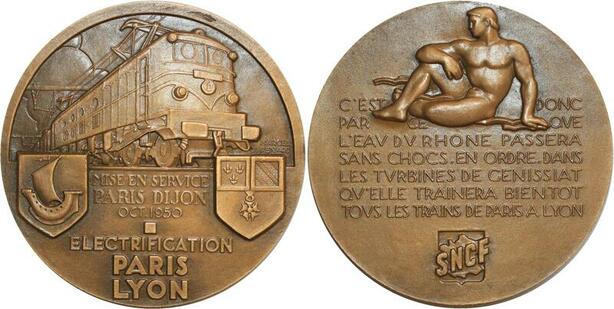 O6496 France Coffret Médaille SNCF Electrification Paris Lyon 1950 Renard SPL