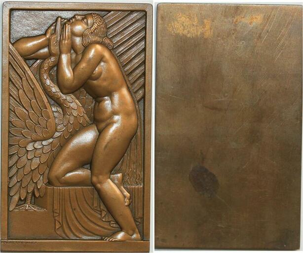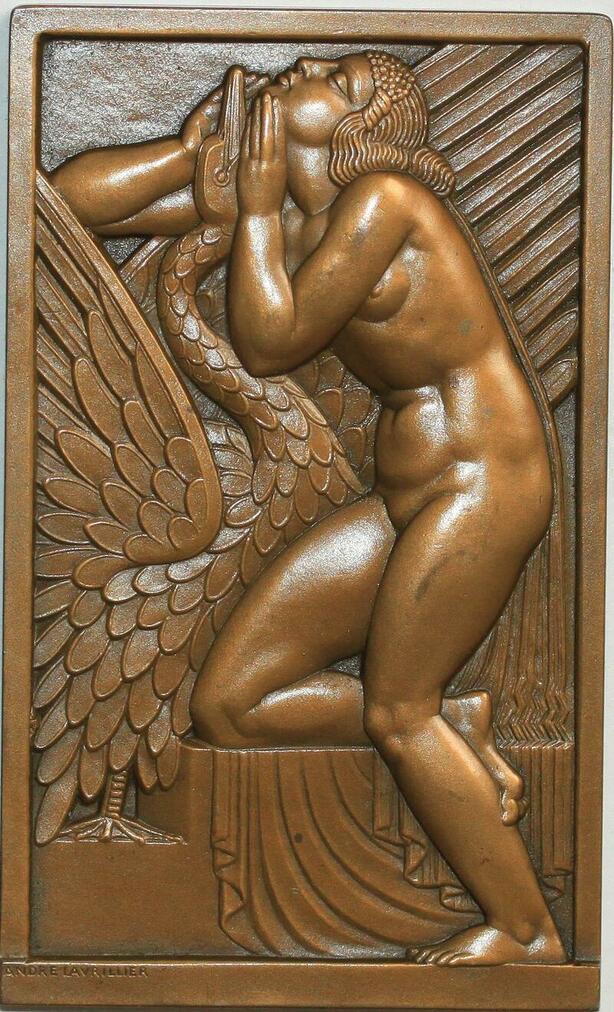 O6514 Scarce Plaque France Art Déco Léda with swan Lavrillier 1925 SPL