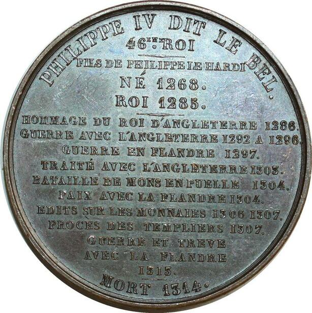 O6532 Médaille Philippe IV le Bel Roi Caqué Guerre Angleterre SUP ->Make offer