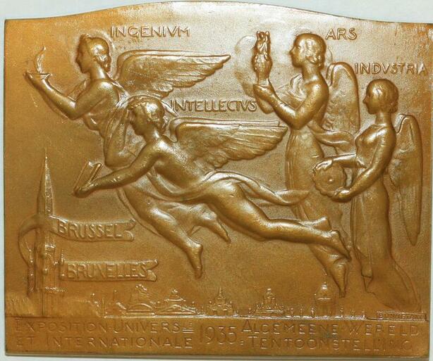 O6582 Rare Médaille Art Deco Exposition Universelle Bruxelles 1935 SUP