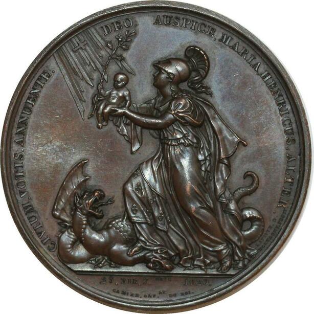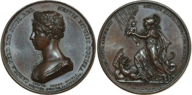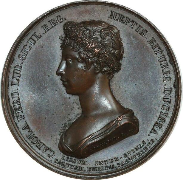 O6597 Rare Médaille duchesse Berry naissance Henri V 1821 SUP